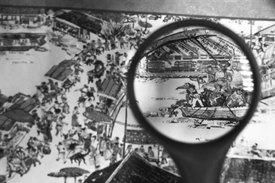 姚少武介绍,《清明上河图》以北京故宫博物院为蓝本,从近7000张邮票中取材。作品注重保留邮票的特色,如齿孔、面值、“中国邮政”、盖销日戳等,让人从邮票原汁原味中感受情趣。